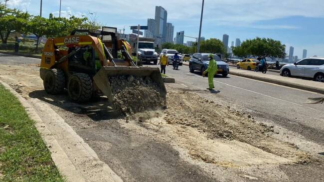 La Secretaría de Infraestructura, con el apoyo del sector privado realiza la reparación provisional del tramo deteriorado entre la intersección de la rotonda La Marina y la Avenida Santander, en Cartagena.