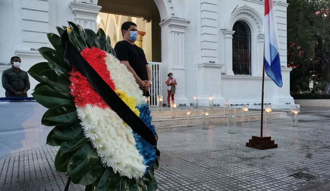 Durante el acto, se hizo entrega de una ofrenda floral que permanecerá expuesta en el Parque Simón Bolívar como símbolo del sentido homenaje que la Alcaldía de Montería rinde a todas esas personas que no lograron ganar la batalla contra el COVID-19.