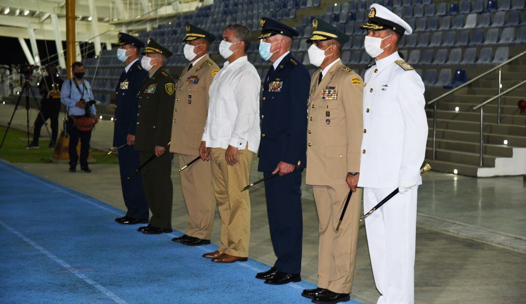 En el campo de paradas de la Escuela Naval de Cadetes, con la bahía de Cartagena de testigo se realizó el ascenso de un personal de Oficiales de insignia y superiores de la Armada de Colombia y el escalafonamiento de nuevos Oficiales de la Armada de Colombia y de la Marina Mercante. La ceremonia, que contó con las medidas sanitarias para la prevención de la COVID-19, estuvo presidida por el presidente de la República, Iván Duque Márquez, y contó con la participación de altos mandos militares.