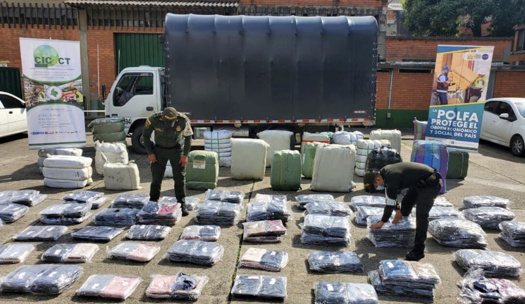 Los cargamentos de estos dos camiones están valorados en más de 400 millones de pesos, y según la investigación de las autoridades, estas confecciones abastecerían las bodegas de algunos almacenes para comercializar la mercancía durante la temporada navideña y fin de año.