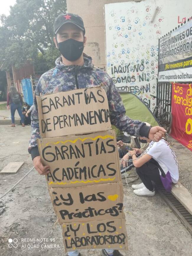 Uno de los universitarios que protagoniza dicha protesta, Federico Vargas, líder estudiantil y estudiante de Química de la UPTC, sostuvo que “se busca exigir la aplicación y ejecución de la matrícula cero para evitar, mejoramiento de conectividad digital, y ayudas para universitarios de estratos 3, 4 y 5 que no se podrán matricular en el 2021. Además, pedimos que realmente haya estrategias para que lo digital y las conexiones virtuales sean eficaces para los estudiantes que tienen menos oportunidades”.