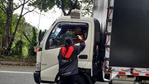 Caracol Radio al lado de los transportadores en la vía la línea / Adrián Trejos
