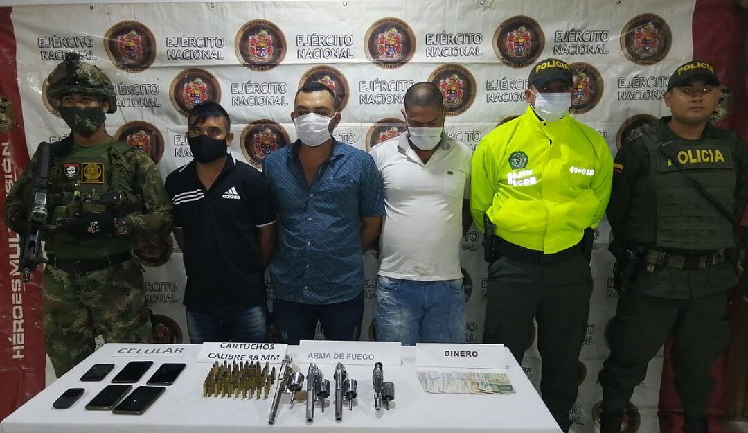 El Ejército Nacional capturó en flagrancia a tres hombres quienes llevaban en su poder material de guerra y dinero en efectivo producto del cobro de extorsiones a pobladores de la región.