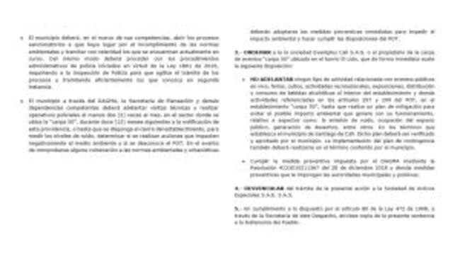 En el fallo del juez también se le ordena a la Administración Municipal realizar el control urbanístico respectivo, para impedir la ejecución cualquiera de las actividades ya mencionadas en este lugar.