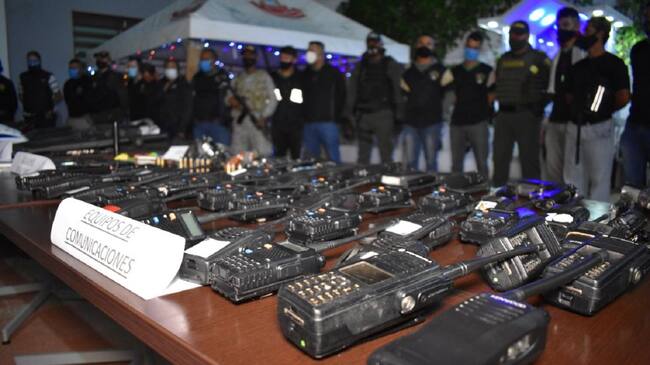 Durante el despliegue de la operación, fueron incautados dos revólveres calibre 38, un arma hechiza, seis pistolas, 34 radios de comunicación, 20 celulares, nueve tonfas, dos armas blancas, 11 pitos y un dispositivo láser.