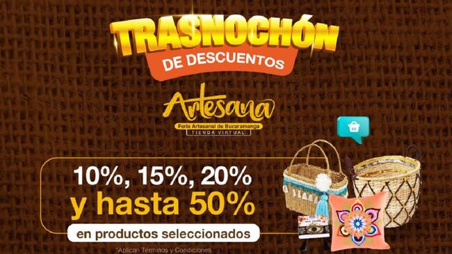En Artesana encontrarás más de 100 productos con descuentos desde 10%, 15%, 20% y hasta del 50% en referencias seleccionadas. Recordemos que “Artesana – Feria Artesanal de Bucaramanga”, es la primera Feria Artesanal Virtual de nuestra ciudad, que apoya e impulsa el trabajo y talento de nuestras artesanas locales.