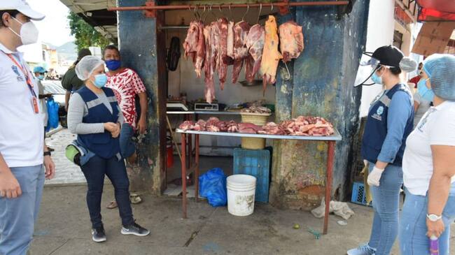 La Dimensión de Seguridad Alimentaria y Nutricional de la Secretaría de Salud de Santa Marta, en articulación con la Policía Metropolitana, realizó inspección, vigilancia y control en cuatro establecimientos de expendio de carne de la periferia de la plazoleta del mercado, plenamente focalizados, los cuales incumplen con la norma establecida por el INVIMA y el Ministerio de Salud y Protección Social.