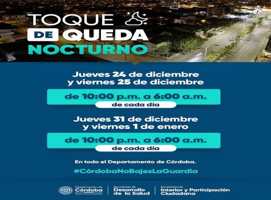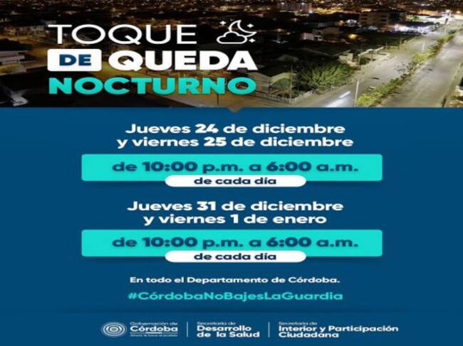 Mediante el decreto 599 del 2020, la Gobernación de Córdoba estableció las medidas que regirán durante las festividades de Navidad y Año Nuevo en el territorio cordobés.