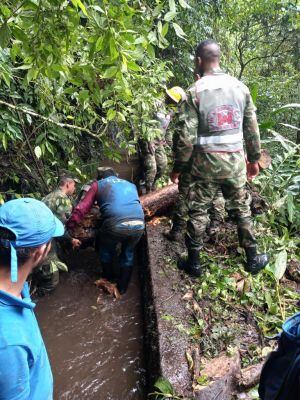 Personal de Empresas Publicas del Quindío y el Ejército han trabajo en la remoción de tierra y limpieza de los sistemas de conducción