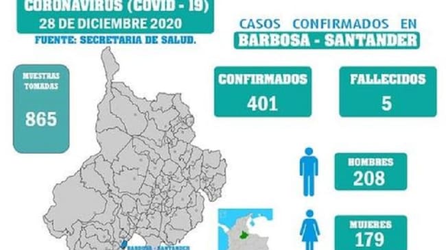 “En Santander, el municipio de Barbosa es uno de los que va en ascenso y de ahí la responsabilidad individual, para proteger su salud, la de los familiares y amigos”, indicó el secretario de salud local Cristian Orlando Molina Chaparro.