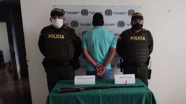 De acuerdo con las autoridades, en el sector conocido como Matadero, el hombre de 25 años transitaba en aparente estado de embriaguez y llevaba consigo un costal de fibra de color blanco, al hacer el requerimiento para un registro vieron que al interior portaba una escopeta calibre 20 con cartuchos y una vainilla percutida, pero no tenía los documentos requeridos para su porte.