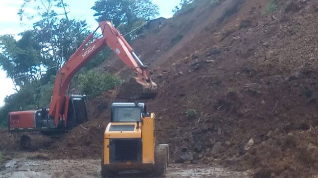 Se trabaja con maquinaria pesada por parte de la Concesión Vial en el sector para habilitar un carril donde ocurre el deslizamiento de tierra.