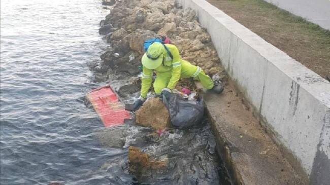 Junto con la empresa de aseo Pacaribe, se realizan operativos de limpieza diariamente, en jornadas de dos frecuencias en sectores como Bocagrande, la bahía de Castillogrande, Puente Román, en Manga, y el Muelle de los Pegasos.