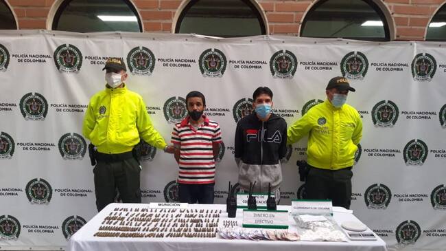 Los dos sujetos capturados fueron identificados como alias “Puchino” y alias “Sebitas”, quienes presuntamente hacían parte del grupo delincuencial conocido como los Pachelly, que tienen actuar delincuencial en el municipio de Bello.