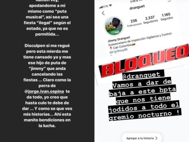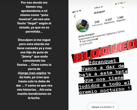 Dranguet, expresó que es un funcionario público y que está cumpliendo con su trabajo “nos han amenazado por redes sociales, hay grupos de artistas, de DJs, de ciudadanos que no están de acuerdo con nuestra labor y nos han amenazado con mensajes fuertes que he recibido por WhatsApp y por el interno de Instagram”.