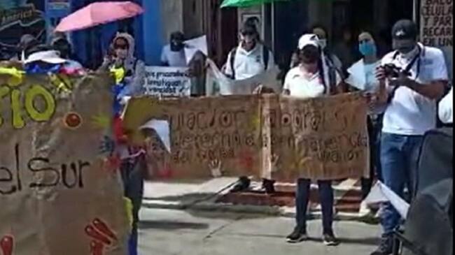 Los educadores protestaron en Santa Rosa del Sur para pedir que no los desvinculen ante la llegada de los ganadores del concurso