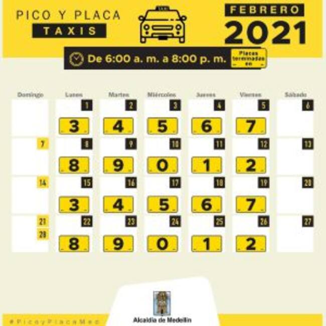 La secretaría de Movilidad de Medellín anunció la fecha de rotación de pico y placa para vehículos de transporte público tipo taxi.