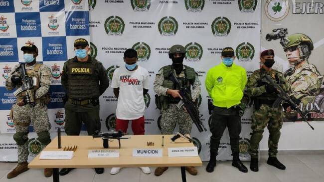 El comandante de la Brigada de Infantería Marina No 2, coronel José Domingo Cantillo, dijo que la captura en flagrancia se logró gracias una labor de inteligencia que se prolongó durante varias semanas y en cuyo poder se le halló una ametralladora, mini uzy y una pistola calibre 9 milímetros , 36 cartuchos y 2 proveedores 9 milímetros.