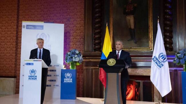 Presidente Iván Duque y Alto Comisionado de las Naciones Unidas para los Refugiados (ACNUR), Filippo Grandi, durante la presentación del Estatuto de Protección para migrantes venezolanos.