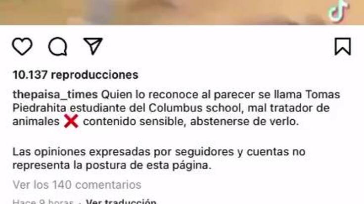 Este hecho incluso fue reprochado por la institución educativa The Columbus School de Medellín, colegio en el que el joven estudia. El corto comunicado en uno de los apartes dice “el departamento de consejería del colegio ya está en contacto con el estudiante y su familia, con el fin de llevar un seguimiento responsable y acorde con los principios y valores de nuestra institución", recalcó.