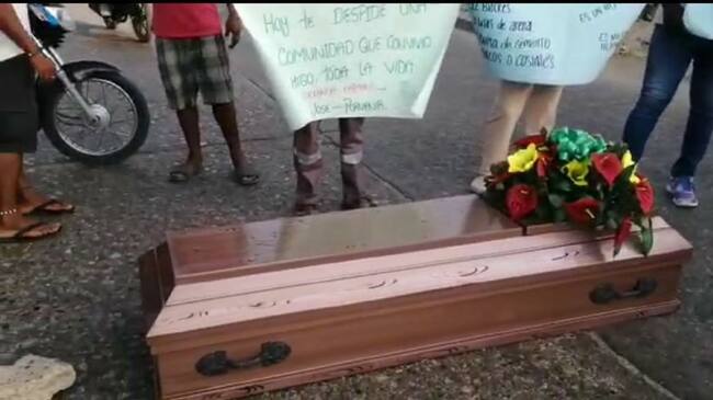 Protesta inusual con ataúd en Cartagena(Captura de video)