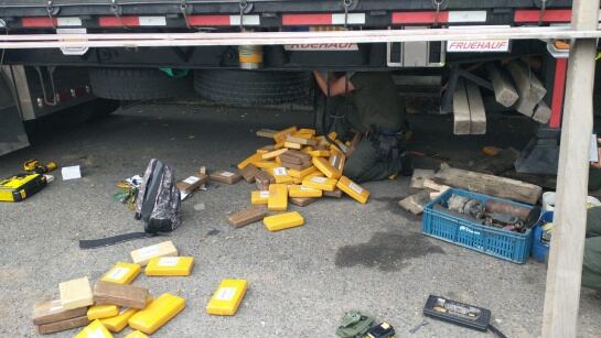 En el registro hallaron una caleta ubicada en el piso del automotor donde están ocultos 326 kilos de clorhidrato de cocaína.