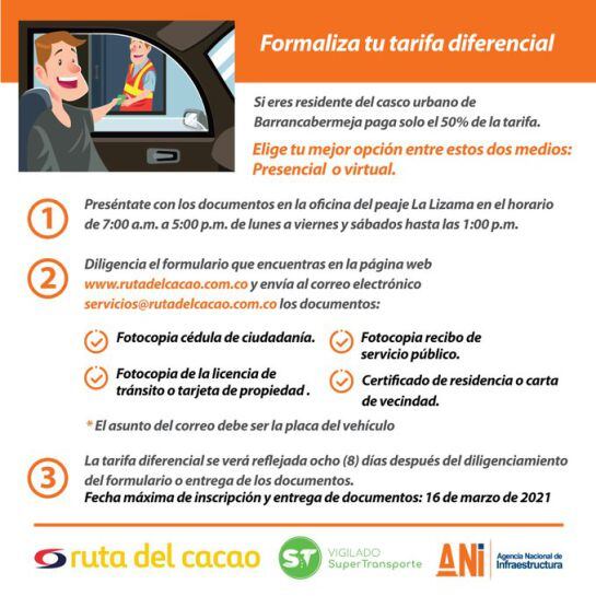 El vicepresidente ejecutivo de la Agencia Nacional de Infraestructura, ANI, Carlos Alberto García señaló, "esas tarifas diferenciales son para las personas que tengan una movilización frecuente, que al menos una vez a la semana vayan a Bucaramanga".