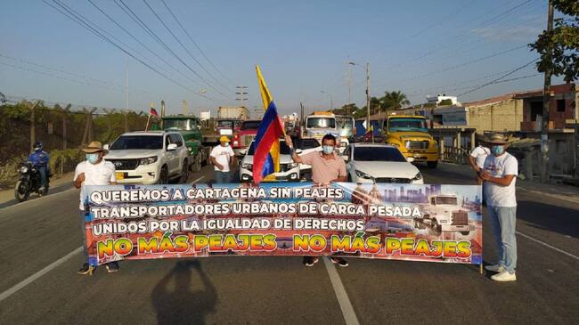 Bloqueos en peajes de Cartagena por movilización de camioneros