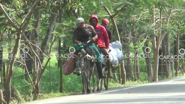 Ante los estrictos controles que están implementando las autoridades como Migración Colombia, la Policía y la alcaldía de Necoclí, la llegada de migrantes no para, y para burlar esos controles los extranjeros se valen de cualquier alternativa, incluso llegar en burro por caminos rurales, en este tipo de transporte se hacen pasar como un lugareño cualquiera y así así llegan al puerto donde zarpan a Capurganá en el departamento del Chocó.
