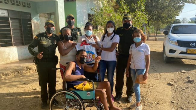 El Departamento de Policía de Bolívar puso en marcha el plan de solidaridad para ayudar al joven de 29 años que hoy sonríe en medio de las adversidades. Con el apoyo de la Fundación San Cristobalito de Guardia y otro grupo de ciudadanos altruistas, el área de prevención y educación ciudadana llevó hasta Elver una cama con su colchoneta, una silla de ruedas, ropa, zapatos, un ventilador y un mercado.