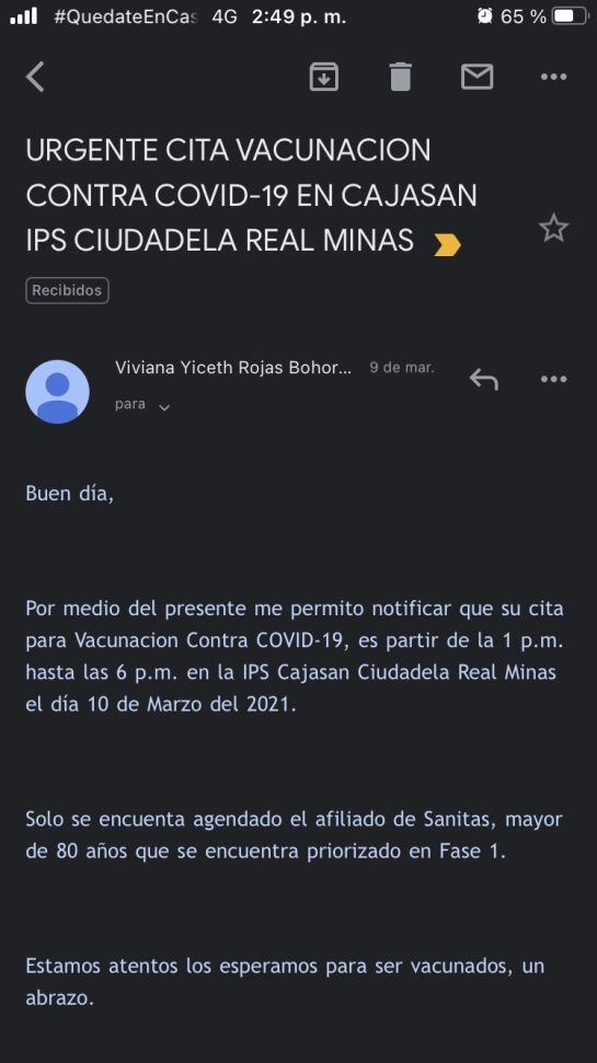 Según Nicolás Vera, familiar de uno de los usuarios que iba a ser inmunizado, al correo electrónico les llegó la notificación para presentarse el miércoles desde la 1:00 de la tarde, sin embargo, al llegar y tras esperar varios minutos, solo les pidieron datos y estar pendientes de un nuevo llamado.