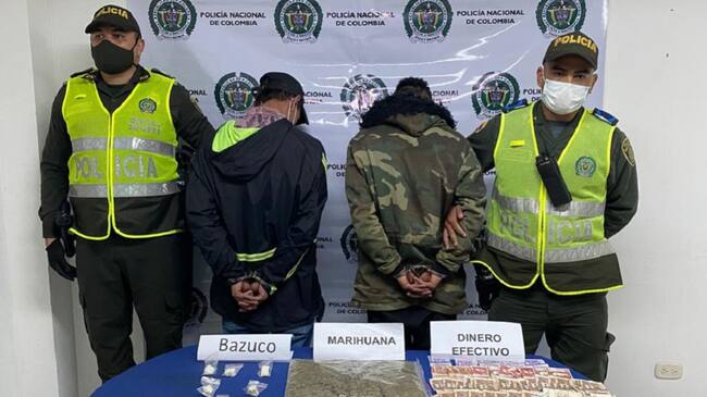 Confirman las autoridades que los elementos incautados y los dos hombres capturados de 31 y 24 años, quedaron a disposición de la Fiscalía, y tendrán que responder por el delito de tráfico, fabricación o porte de estupefacientes.