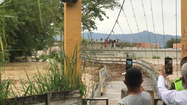 La creciente del río Bugalagrande que atraviesa esta población, se llevó un puente peatonal colgante, conocido como La Bamba.