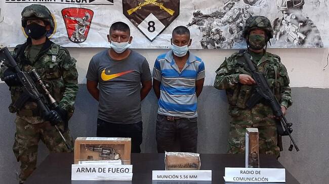 Luego de la destrucción de una fábrica de artefactos en el municipio de Corinto, al norte del Cauca. El Ejército aseguró que capturó a dos hombres pertenecientes presuntamente a la sexta estructura Dagoberto Ramos Ortiz, que opera en esta región.