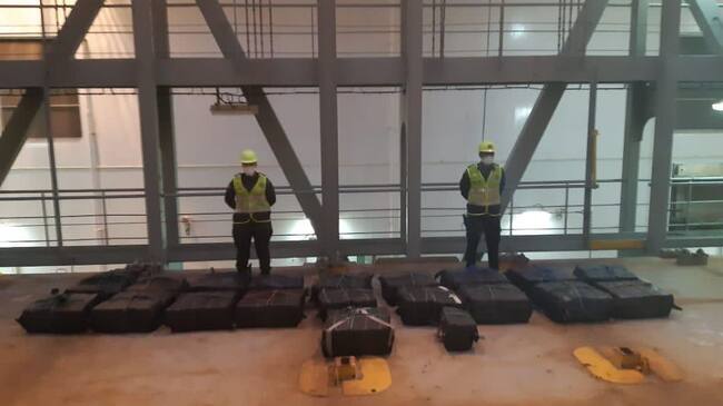 "El contenedor se encontraba sobre cubierta con mercancía tipo exportación y al realizar la inspección física a la carga conformada por materiales para construcción, los Policías hallaron 20 estopas con 938 paquetes rectangulares, envueltos en cinta color beige", precisó el coronel Yasid Alberto Montaño, Jefe de Área de Control Portuario y Aeroportuario Dirección de Antinarcóticos.