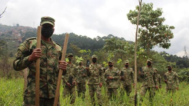 Los militares trabajan en un proyecto de reforestación, en conjunto con la Alcaldía de Medellín