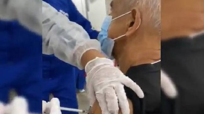Hija del adulto mayor grabó el momento de la vacunación(Captura de video)