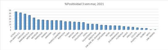 % Positividad 3 sem marzo 2021 / Instituto Nacional de Salud