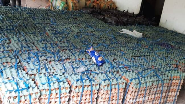 Cubetas de huevos incautadas. / Ejército Nacional