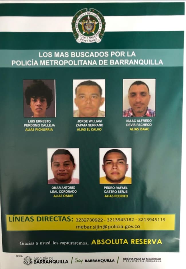 También hay 7 más que son buscado por homicidio en los municipios de Malambo y Soledad. Entre los más buscados hay dos mujeres.