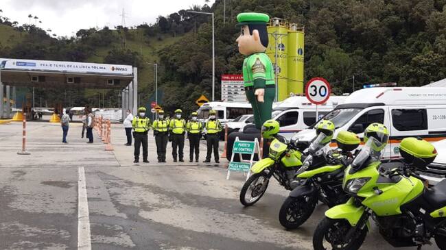En la vía al Alto de la Línea hay 45 policías garantizando la seguridad. / Suministrada Policía Nacional