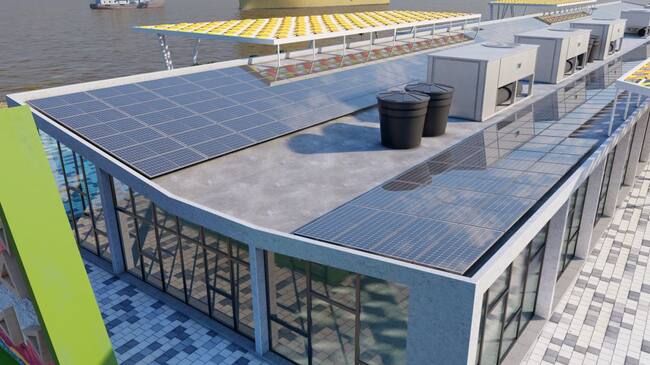 Render del Caimán del Río con paneles solares(Cortesía Alcaldía de Barranquilla )