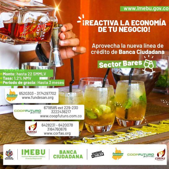 El Instituto Municipal de Empleo y Fomento Empresarial, Imebu, informó que lanzó una línea de crédito como 'salvavidas' para propietarios de bares, discotecas y transporte especial, que resultaron afectados por la crisis generada por la COVID-19.