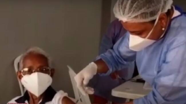 Elva Castro, primera vacunada en conjuntos residenciales de Cartagena
