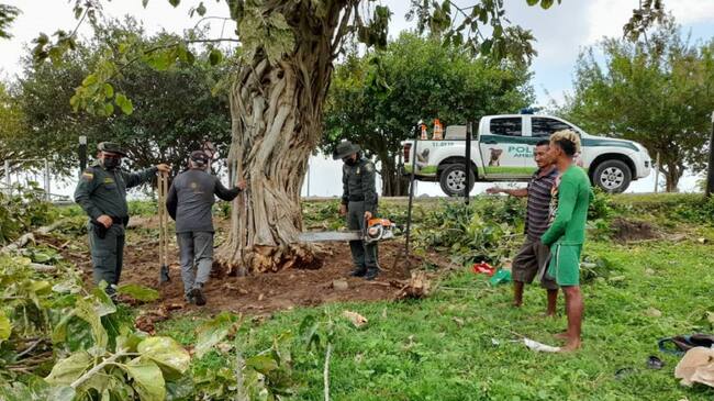 Miembros del Grupo de Protección Ambiental y Ecológica del Departamento de Policía Bolívar en Magangué, sorprendieron a un joven de 28 años y a un adulto mayor de 57 años cuando talaban un árbol de la especie caucho.