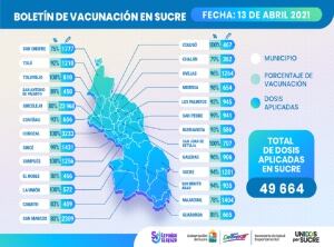 El departamento de Sucre se registra un total de 49.664 dosis aplicadas contra el COVID-19.