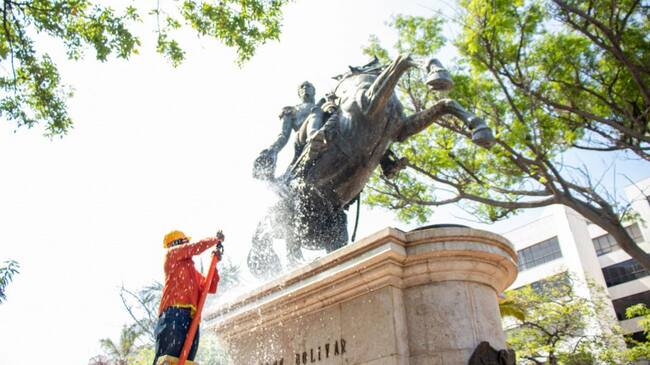 Santa Marta adelanta jornadas de limpieza y desinfección de los monumentos que se ubican el el Centro Histórico de la ciudad. Estas actividades son coordinadas por la Alcaldía, a través de la Secretaría de Gobierno del Distrito y se desarrollan en el parque Simón Bolívar y Fuente de las Cuatro Caras.