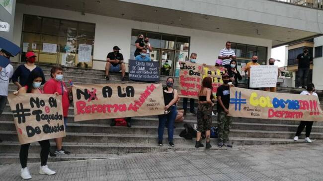 En la mañana del domingo, una manifestación similar tuvo lugar en el parque principal del municipio de Santa Rosa de Cabal, en ese lugar protestaron para rechazar lo que han denominado “el toque de quiebra”.