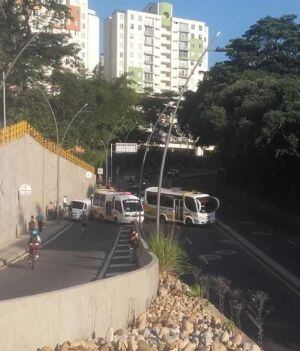 En este punto, por donde circulan vehículos que vienen del sector suroriental del área hay algunos buses que impiden el paso de otros automotores. También hay obstáculos para la movilidad en el norte de Bucaramanga.