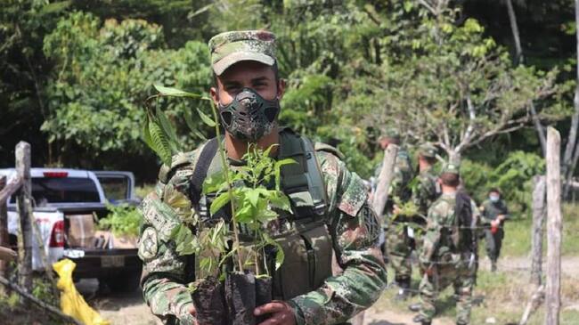 Soldados de la Octava Brigada del Ejército y la siembra de árboles en el día de la tierra / Cortesía Octava Brigada